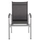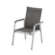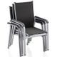Křeslo nízké, stohovatelné, stříbrná hliníková konstrukce, elastická a odolná umělá tkanina v antracitovém odstínu