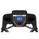 - Displej. Přehledný LCD displej s modrým podsvícením zobrazuje měřené hodnoty: čas / čas uběhnutí 400m okruhu, rychlost, tréninkovou vzdálenost / počet odběhnutých 400m okruhů během tréninku, puls / počet spálených kalorií. Zobrazuje se také stupeň sklonu pásu a zvolený tréninkový program. Grafické zobrazení znázorňuje běh na 400m atletickém okruhu. Rychlá volba rychlosti (2-3-4-6-8-10-13-16 km/h), sklonu pásu (0-2-4-7-10 %) a přednastavených programů pomocí funkčních tlačítek na displeji. Tlačítko FAN pro zapnutí/vypnutí ventilátoru.