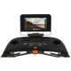 • Displej. 15,6” HD dotyková obrazovka s komfortním ovládáním zobrazuje na spodní liště měřené hodnoty: tréninkový čas, vzdálenost, puls, počet spálených kalorií a počet kroků za minutu. Po stranách se ukazuje tréninková rychlost a sklon pásu. Jsou zde i tlačítka pro rychlou volbu rychlosti (3-6-9 km/h) a sklonu pásu (3-6-9 %).