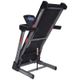 - Displej. Velký LCD displej (15,7 x 9,6 cm) s modrým podsvícením přehledně zobrazuje měřené hodnoty: čas, rychlost, tréninkovou vzdálenost, puls, počet kroků, počet kroků/min a počet spálených kalorií. Udává také číslo zvoleného programu a stupeň sklonu pásu. Grafické zobrazení zátěžového profilu (u přednastavených a uživatelských programů) nebo počítání 400m atletických okruhů. Rychlá volba rychlosti (3-6-9-12-15 km/h) a sklonu pásu (3-6-9-12-15 %) pomocí funkčních tlačítek na ovládacím panelu.