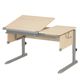 rostoucí psací stůl pro děti, dělená pracovní plocha, vhodný pro praváky i leváky, stříbrná - deska javor, vyroben v Německu