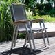 Křeslo stohovatelné, hliníková konstrukce v odstínu champagne, elastická a odolná umělá tkanina v barvě mocca, týkové područky