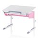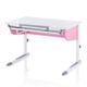 rostoucí psací stůl pro děti, nastavitelný sklon desky, integrované pravítko, prostorná zásuvka, transportní kolečka, deska bílá - růžová, vyroben v Německu