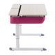 - dvě samostatné pracovní plochy – pevná zadní část nabízí prostor na odložení věcí, přední část pracovní plochy s nastavitelným sklonem pro pohodlnější psaní a kreslení