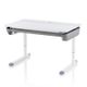 rostoucí psací stůl pro děti, nastavitelný sklon pracovní desky, výsuvná zásuvka, multifunkční pravítko, integrovaný box na kabely, transportní kolečka, deska bílá – šedá, vyroben v Německu