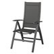 Křeslo polohovatelné, robustní a zároveň lehké díky hliníkové konstrukci antracitové barvy, elastický a odolný textilní výplet v antracitovém odstínu, hliníkové područky