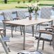 Stůl 160 x 95 cm, výška stolu 74 cm, hliníková konstrukce v odstínu champagne, týková deska