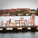 Křeslo stohovatelné, konstrukce FSC® týk, bílý sedák, opěradlo a područky Kettalux