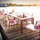 Stůl 160 x 95 cm, výška stolu 75 cm, certifikovaný týk, bílá deska Kettalux