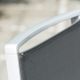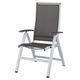 Křeslo polohovatelné, sklápěcí, stříbrná hliníková konstrukce, elastická a odolná umělá tkanina v antracitovém odstínu, barevně sladěné hliníkové područky