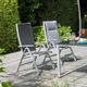 Nechte odpočinout tělo i ducha a načerpejte nové síly, sestava Morendo je k tomu tím pravým místem. Stříbrnou hliníkovou konstrukci a područky doplňuje prodyšný výplet v barvě antracitu. Všechny materiály jsou odolné proti nepřízni počasí, snadno se udržují a mají dlouhou životnost. Sestavu můžete jednoduše doplnit barevné podušky nebo třeba zahradní slunečník.
