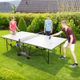 venkovní stůl, sklopitelný, šedá hrací plocha, výkyvná kolečka s brzdou, síťka součástí stolu, držák na pálky a míčky, možnost hry jednoho hráče, vyroben v Německu