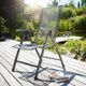 Křeslo vysoké, polohovatelné, sklápěcí, kovově šedá konstrukce ze značkové oceli, povrchová úprava Kettlotherm, područky z hliníku