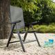 Křeslo polohovatelné, robustní a zároveň lehké díky hliníkové konstrukci antracitové barvy, elastická a odolná umělá tkanina v antracitově hnědém odstínu