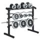 Odkládací stojan Kettler poskytuje dostatek místa pro uložení činek, kotoučů a dlouhých činkových os.
