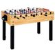 stůl na stolní fotbálek, stabilní konstrukce z dřevovláknité desky, nastavitelná výška stolu, teleskopické tyče, počítadlo gólů, 10 míčků součástí, integrované kapsy pro rychlé vrácení míčku, hmotnost 50 kg, provedení buk