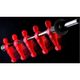- Hráči jsou z jednobarevného plastu, pevně nalisovaní na tyčích, nepohybují se, pevně drží svoji pozici. Rozmístění hráčů: 1 brankář, 2 obránci, 5 záložníků a 3 útočníci.