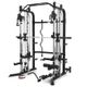 profesionální kladkový stroj s multipressem, protisměrné kladky nastavitelné do 21 poloh, multipress na olympijské kotouče o ø50 mm a 25 mm, 2 výškově nastavitelné J-háky s bezpečnostními zarážkami pro trénink s dlouhou činkou, multiúchopová hrazda, 4 odkládací trny na kotouče, řada adaptérů součástí, hmotnost 140 kg