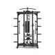 profesionální kladkový stroj s multipressem, sklopitelný pro úsporu místa, protisměrné kladky, horní a spodní kladka, 2 výškově nastavitelné J-háky s bezpečnostními zarážkami pro trénink s dlouhou činkou, multiúchopová hrazda, 8 odkládacích trnů na kotouče, řada adaptérů součástí, hmotnost 172 kg