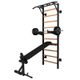 kvalitní žebřiny – ribstole s hrazdou, pevná ocelová konstrukce 80 x 40 mm, 10 dřevěných příček s šířkou 710 mm, možnost rozšíření o další příslušenství, kotvení do zdi, nosnost 100 kg, hmotnost 28,5 kg