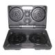 - 2 černě lakované litinové kotouče o hmotnosti 2,5 kg