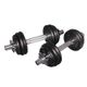 Set TOORX Jednoruční činka 15 kg obsahuje dvě jednoruční nakládací činky s měnitelnou zátěží, čtyři šroubovací hvězdicové uzávěry pro zabezpečení závaží a sadu dvanácti černě lakovaných litinových kotoučů. Pro snadnější skladování a transport je vše uloženo v praktickém kufříku.