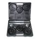 2 nakládací činkové tyče, 4 hvězdicové uzávěry, litinové kotouče 8 x 1 kg a 4 x 0,75 kg, praktický kufřík