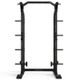multifunkční posilovací stojan, masivní ocelová konstrukce, 2 výškově nastavitelné držáky na činku, 2 výškově nastavitelné zarážky na dlouhou osu, multiúchopová hrazda, 8 odkládacích trnů na kotouče, 6 držáků na posilovací gumy, max. nosnost 300 kg, hmotnost 105 kg