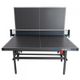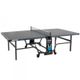 venkovní stůl, sklopitelný, šedá hrací plocha s antireflexním povrchem, 4 zdvojená transportní kolečka, stabilní konstrukce z kovových profilů 50 x 30 mm, síťka s napínáním součástí stolu, držák na pálky a míčky, bezpečný mechanismus sklopení stolu, hmotnost 70 kg, šedá