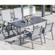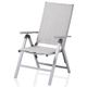Zahradní křeslo polohovatelné, robustní hliníková konstrukce i područky stříbrné barvy, pružný textilní výplet ve světle šedém odstínul