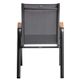 Křeslo nízké, stohovatelné, stabilní hliníková konstrukce antracitové barvy, elastická a odolná umělá tkanina v antracitově šedém odstínu, týkové područky