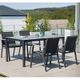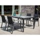 Zahradní křeslo stohovatelné, robustní hliníková konstrukce i područky antracitové barvy, pružný textilní výplet v ostínu charcoal