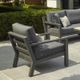 zahradní sestava, hliníková konstrukce, výškově nastavitelný stolek, keramická deska stolu, lávově šedá - carbonová