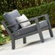 Moderní sestava zahradního nábytku LIFE TIMBER Corner set oslní svým komfortem i unikátním designem. Maximální pohodlí při relaxaci zajistí praktická rohová sedačka, samostatné křesílko a výškově nastavitelný stolek s keramickou deskou. Hliníková konstrukce jednotlivých dílů sestavy v lávově šedé barvě je doplněna silnými polstry v karbonovém odstínu, které jsou vyrobeny z UV stabilního a vodě odpudivého materiálu. Nechte se zlákat a prožijte první prosluněné jarní dny venku obklopeni rodinou a přáteli.