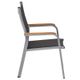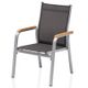 Židle stohovatelná, stabilní hliníková konstrukce stříbrné barvy, elastická a odolná umělá tkanina v antracitovém odstínu, týkové područky